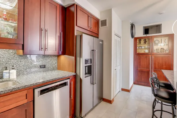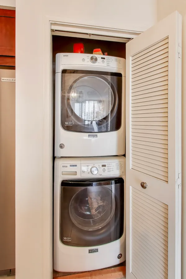 Welcome to the Park Newberry, on a quiet block across from Washington Square Park. This Spacious 1,384 SF 2BR/2BA offers a sunny southern exposure. Open living/dining room with balcony. The expanded kitchen features cherry cabinetry, stainless steel appliances, granite counters, and additional built-ins. Large bedrooms with excellent closet space, updated baths. Canadian cherry floors throughout. Deeded garage space (#P086) included. The building has seen major updates, including a renovated lobby and hallways, upgraded amenity floor with gym, party room, and business center, plus modernization of all five elevators. Everything except Commonwealth Edison is included in the assessment. A "Four Pipe" heating and cooling system allows you to have full control all year. Two dogs up to 25lbs. welcome. $1.5+M in reserves. 24 hr doorstaff and maintenance. On site manager.